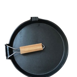 Poêle en fonte Sizzler/Sizzling/Fajita Plate/Pizza Pan avec poignée pliante, revêtement à l'huile végétale