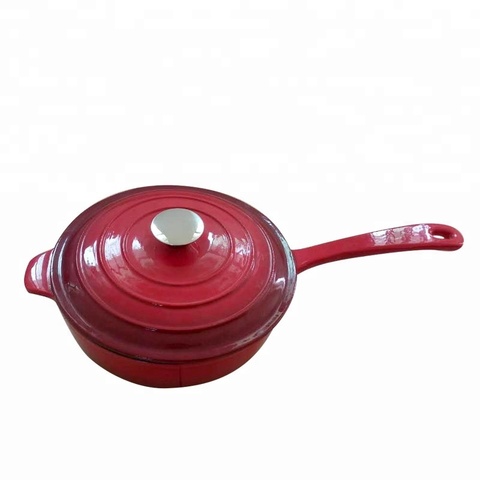 Poêle à sauce en fonte émaillée Offres Spéciales avec long manche et couvercle Pot antiadhésif dans la cuisine pour le lait ou les aliments délicieux