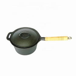 Pot à lait en fonte de haute qualité avec manche en bois 16cm noir pressé