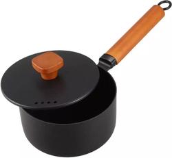 Высококачественный Современный Дизайн чугунный молочный горшок с деревянной ручкой 16 см прессованный поддон черный